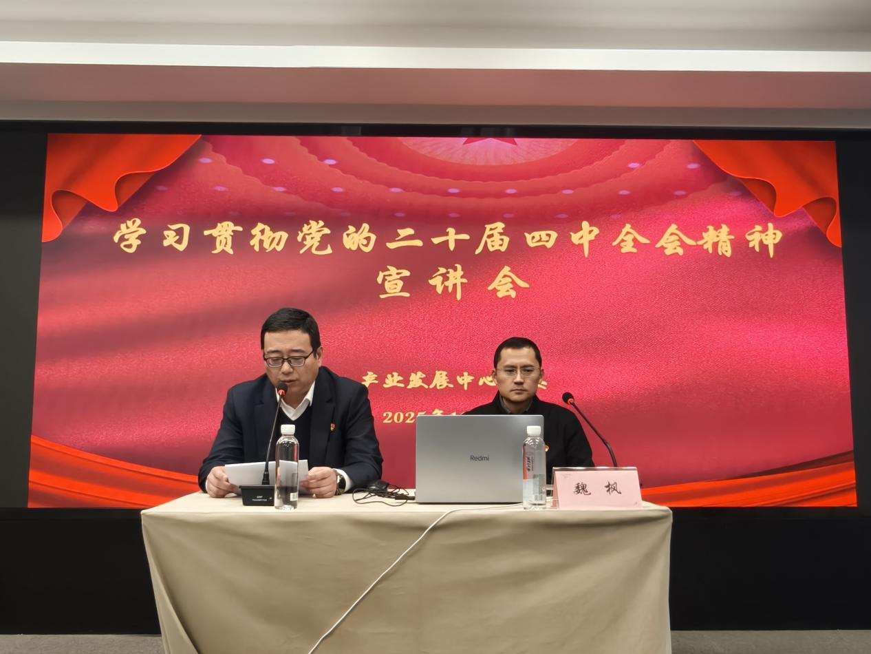 12月3日,产业发展中心召开学习贯彻党的二十届四中全会精神专题宣讲会。学校专家宣讲团成员、经济与工商管理学院院长魏枫以“深悟党的二十届四中全会精神实质 加快形成和发展新质生产力”为题作宣讲报告,产业发展中心全体党员及入党积极分子参加学习,会议由中心主任王凯主持。