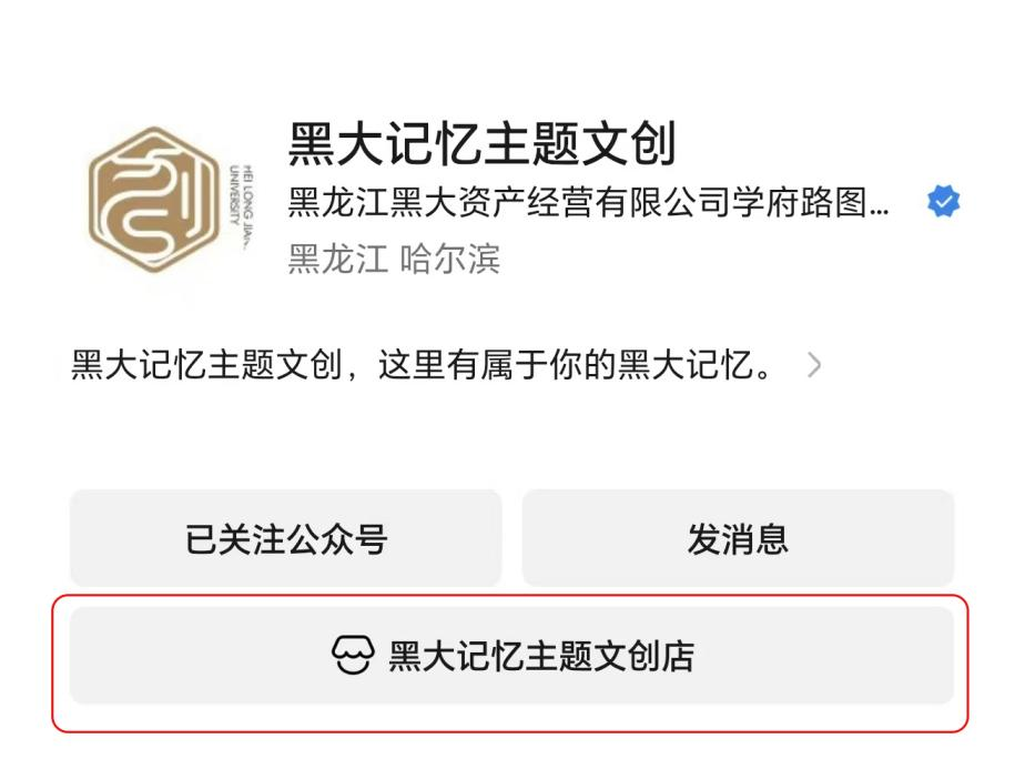 搜索关注“黑大记忆主题文创”公众号,点击【黑大记忆主题文创店】即可进入小店。