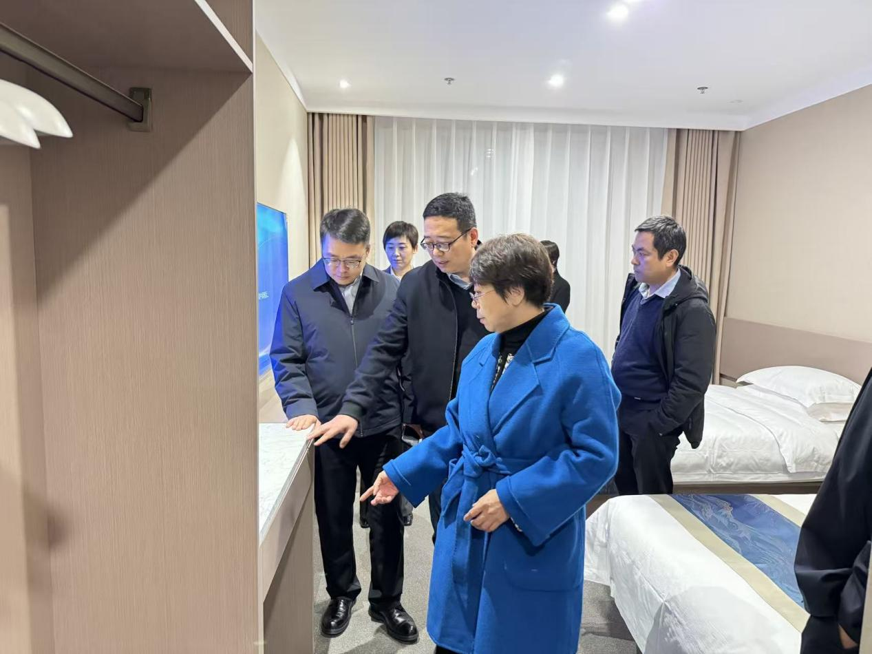 校领导一行实地考察了酒店大堂、智慧客房、餐饮区域、康体设施、共享自习室及综合会议区等功能空间,并详细听取了酒店运营团队关于设施建设、智能化系统与服务流程的汇报,对酒店在智慧服务、绿色节能与业态融合等方面的创新实践予以高度评价,认为这些探索正是践行学校第十二次党代会提出的“数字赋能”与“绿色校园”建设理念的生动实践。